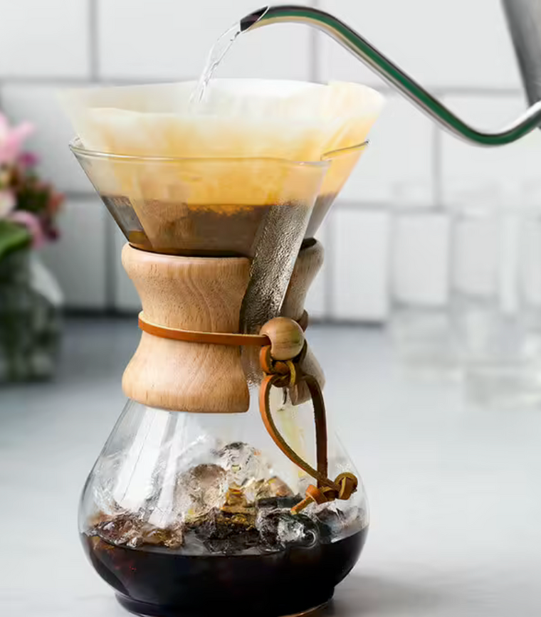 Avec la CHEMEX, redécouvrez l'art du café fait maison, alliant simplicité et raffinement pour une expérience gustative incomparable.
